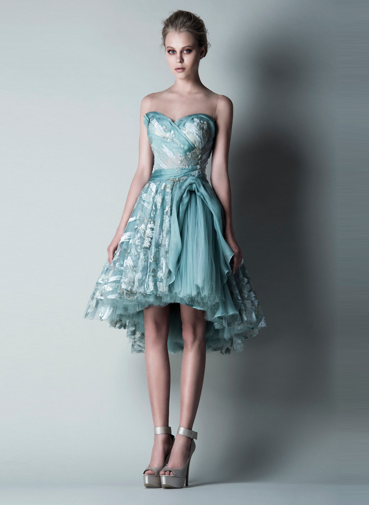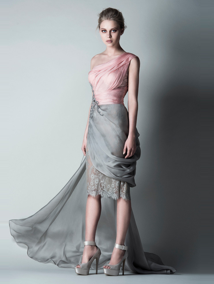 Filled with soft hues ranging from auqa, blush and off white to black & white, the collection’s lace, tulle, velvet and aquifer organza pieces are ready to wear in elegant fashion.